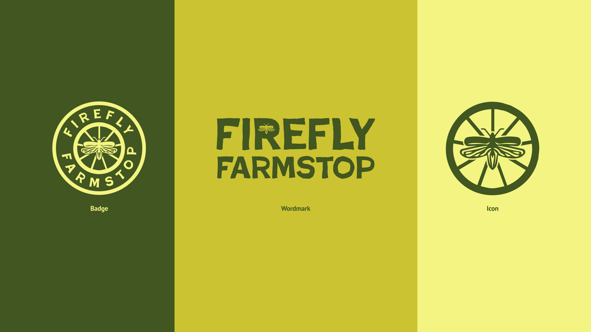 We chose Poster Cut Neue for Firefly Farmstop’s wordmark because of its unique, hand-cut feel that reflects the human touch behind the design. The wordmark also incorporates the illustrated firefly as a closed counter, tying the typography back to the core logo. For body text, we paired it with the open-source font PT Sans to keep materials clear and easy to read across all uses.